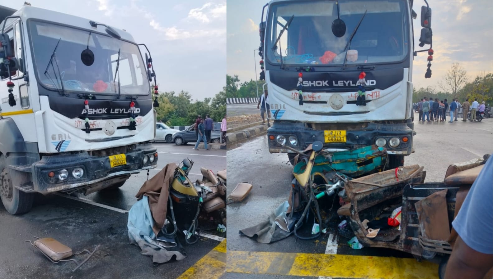 ट्रक व प्रवासी ऑटोमध्ये झालेल्या जोरदार धडकेत ऑटो पूर्णपणे चक्काचूर झाला आहे.