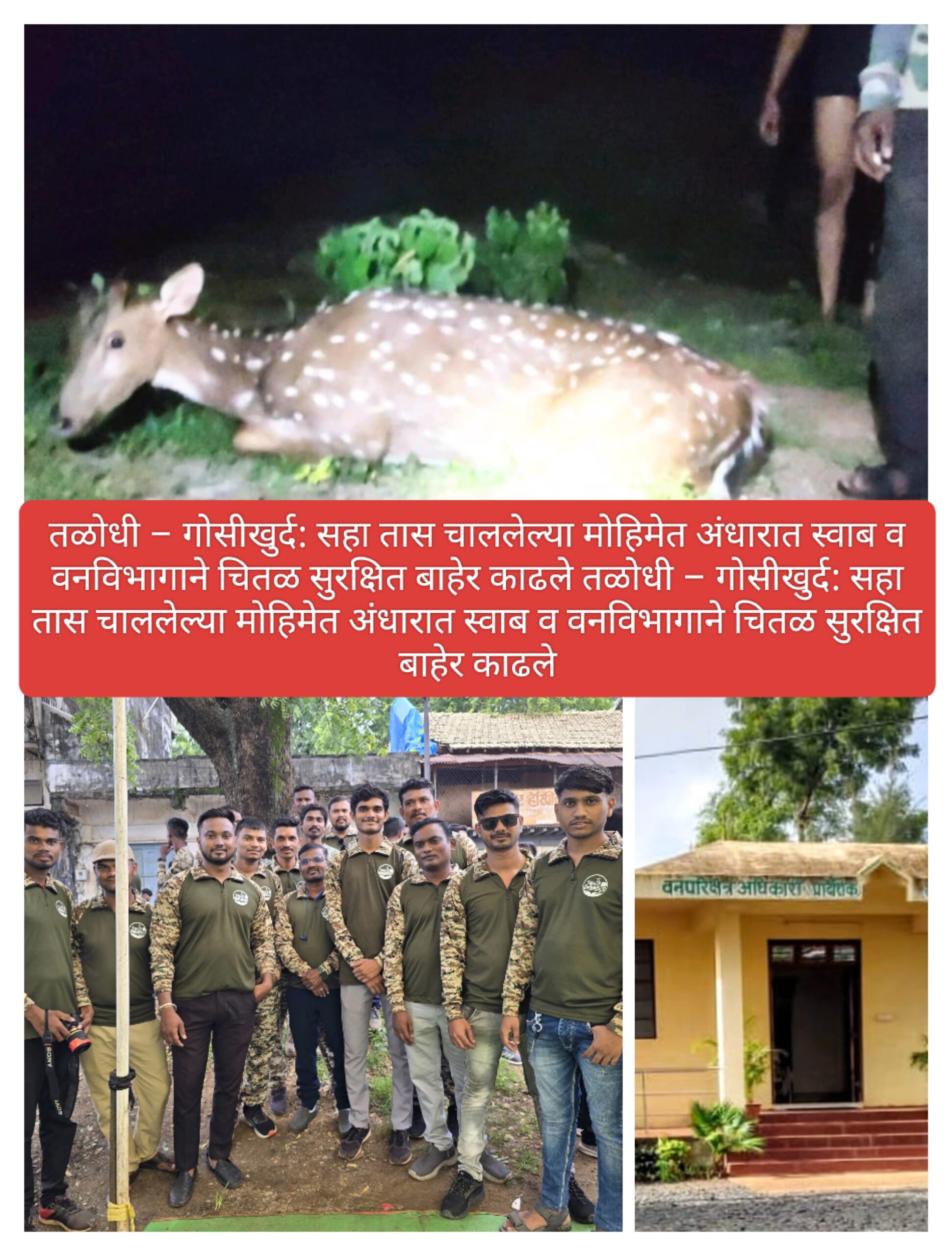 तळोधी – गोसीखुर्द: सहा तास चाललेल्या मोहिमेत अंधारात स्वाब व वनविभागाने चितळ सुरक्षित बाहेर काढले