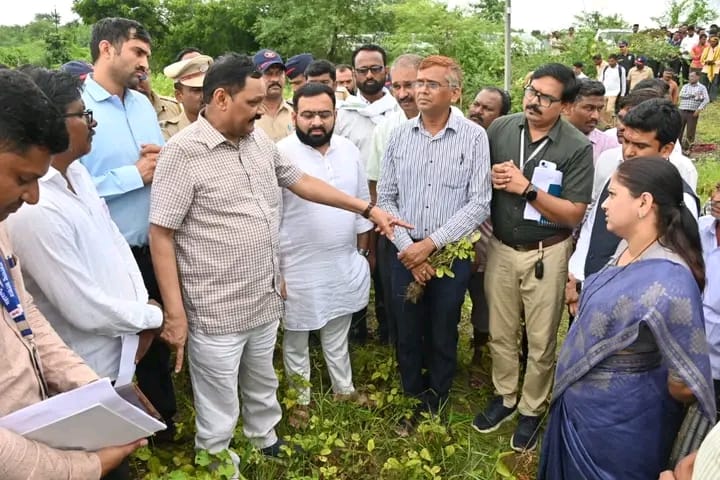 चंद्रपूर, दि. 24 : अतिवृष्टीमुळे नुकसान झालेल्या चिमूर आणि वरोरा तालुक्यातील शेतमालाची, राज्याचे आदिवासी विकास मंत्री तथा चंद्रपूर जिल्ह्याचे पालकमंत्री डॉ. अशोक उईके यांनी आज (दि.24) बांधावर जाऊन पाहणी केली व शेतक-यांसोबत संवाद साधला. यावेळी त्यांच्यासोबत राज्याचे कृषी राज्यमंत्री आशिष जयस्वाल होते.