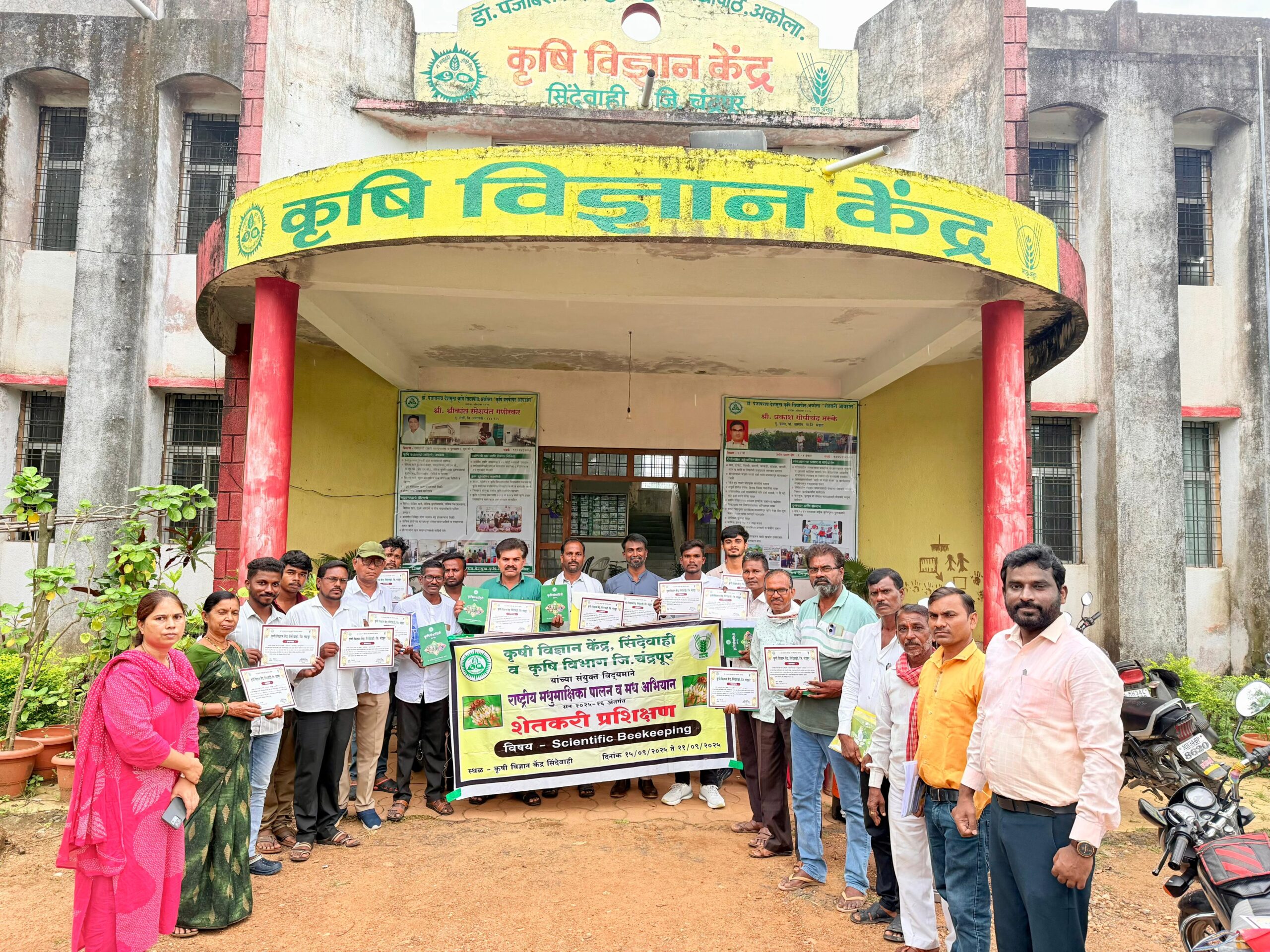 डॉ. पंजाबराव देशमुख कृषी विद्यापीठ अकोला अंतर्गत कृषी विज्ञान केंद्र, सिंदेवाही आणि कृषी विभाग जिल्हा चंद्रपूर यांच्या संयुक्त विद्यमाने शास्त्रोक्त मधमाशी पालन या विषयावर सात दिवसीय प्रशिक्षणाचे आयोजन करण्यात आले होते. या प्रशिक्षणाचा समारोप आज उत्साहात पार पडला.
