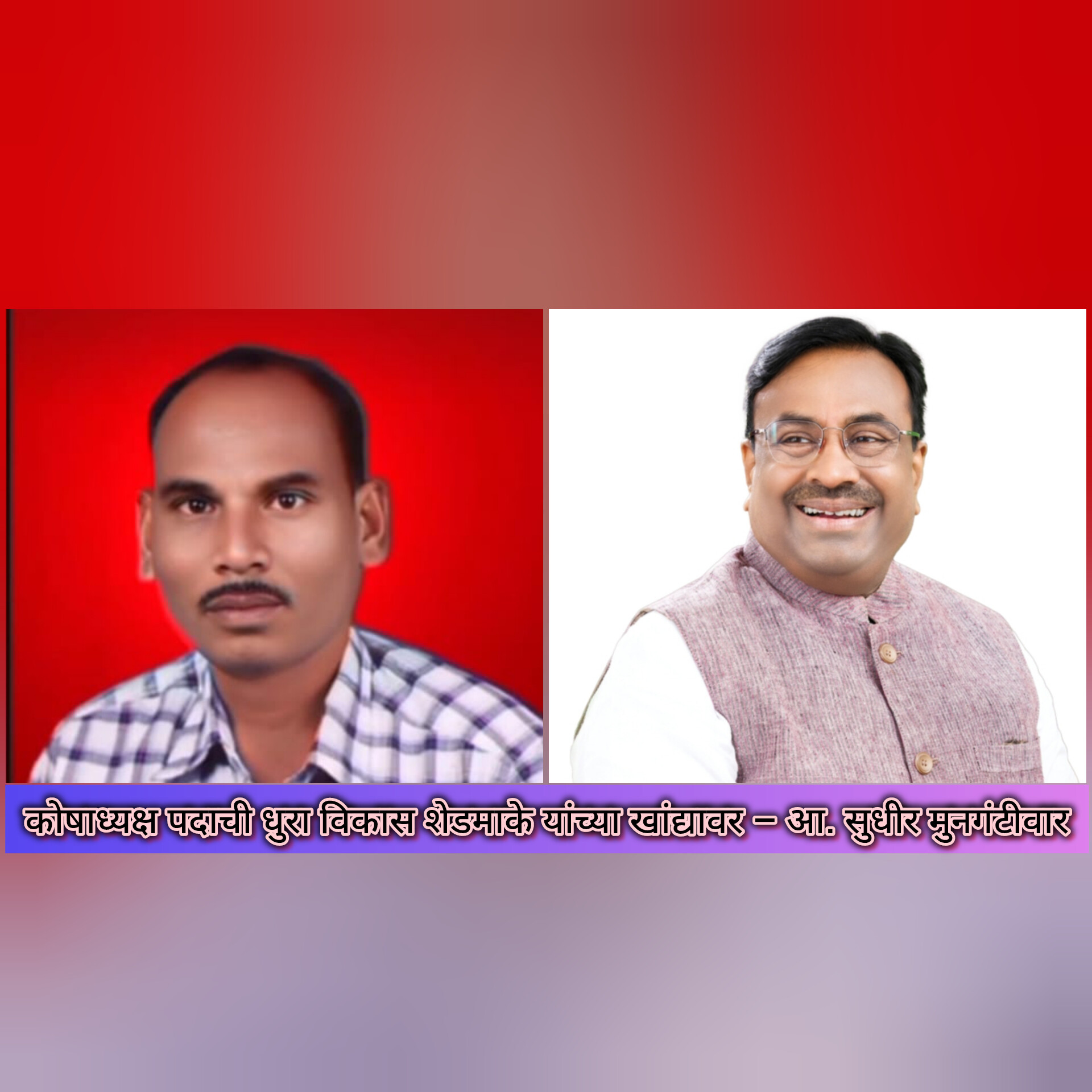 कोषाध्यक्ष पदाची धुरा विकास शेडमाके यांच्या खांद्यावर – आ. सुधीर मुनगंटीवार
