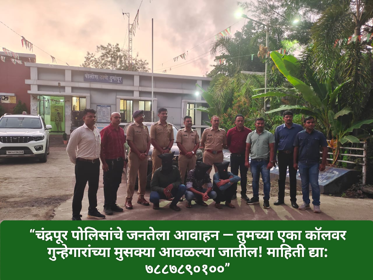 ही कारवाई पोलिस अधीक्षक श्री. सुदर्शन मुम्मका, अपर पोलिस अधीक्षक श्री. ईश्वर कातकडे आणि उपविभागीय पोलिस अधिकारी श्री. प्रमोद चौगुले यांच्या मार्गदर्शनाखाली पोलीस स्टेशन दुर्गापूरचे ठाणेदार पो.नि. संदीप एकाडे पाटील यांच्या नेतृत्वात पो.उपनिरीक्षक प्रविण बिंकलवार, पो.हवा योगेश शार्दुल, मंगेश शेंडे, रुपेश सावे, किशोर वलके, सोनल खोब्रागडे आणि मोरेश्वर गोरे यांच्या पथकाने केली.